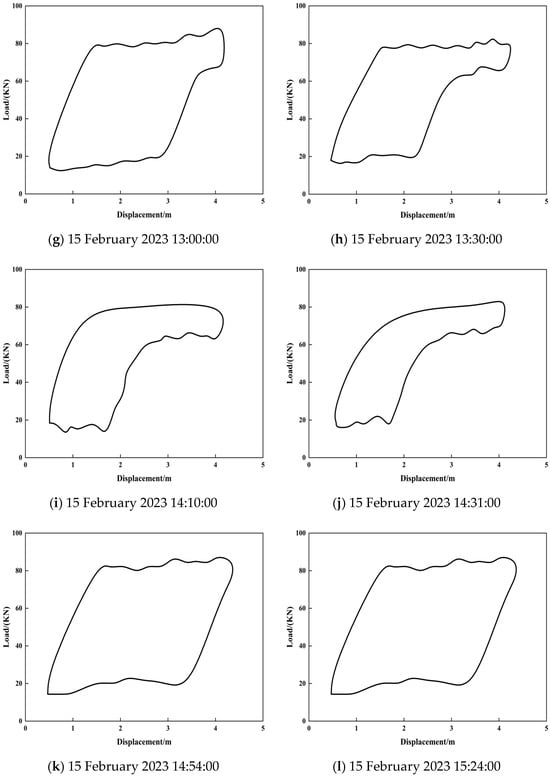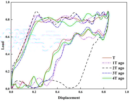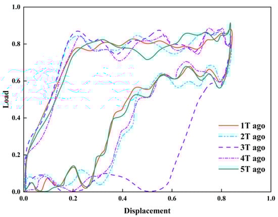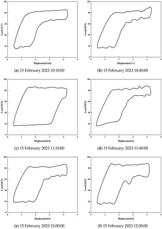 This study uses 500 measured dynamometer cards continuously collected from a production plant in Oilfield X as the original time series data. The acquisition parameters were set to 200 sampling points per dynamometer and a sampling interval of 20 min. With extended pumping time, the “handle” shape of low-producing wells’ dynamometer cards gradually elongates, showing a temporal trend that is valuable for prediction studies.