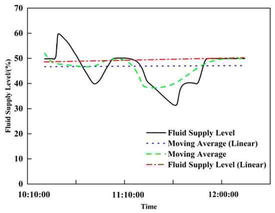 The degree of liquid supply in a well reflects the ratio of actual fluid output to the theoretical maximum output and can be preliminarily judged by indicators such as production and water cut; it is important for improving production efficiency [,,], reducing energy consumption, and optimizing field development. Traditional measurement methods are complex, have poor real-time performance, and are easily disturbed. Andrade, G.M.P. et al. [] analyzed the principles and pros and cons of various flowmeters and downhole test tools and proposed improvements, laying a foundation for modern measurement technologies and AI development; Zhong, Z. et al. [] designed a monitoring system based on surface sensors that judges the liquid supply degree of low-producing wells from wellhead pressure, temperature, and other parameters—this system is simple to install and maintain and has been field-validated. Han, D. et al. [] built a liquid supply recognition model based on machine learning that predicts low-producing well supply conditions from historical production and real-time monitoring data, showing high predictive accuracy and generalization. The above methods generally suffer from model complexity and the need for large sets of operating parameters, highlighting the potential of deep learning for predicting liquid supply in low-producing wells.