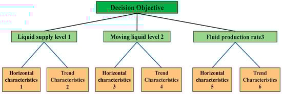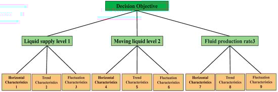 To optimize production parameters for a low-production well, level, trend and fluctuation features of the liquid supply level, dynamic fluid level and production rate are first extracted from a short-time window to provide the basis for optimization. Based on these features, a multi-level structural model for optimizing production parameters of low-production wells is established. The hierarchical structure for short-term optimization is shown in Figure 28.
