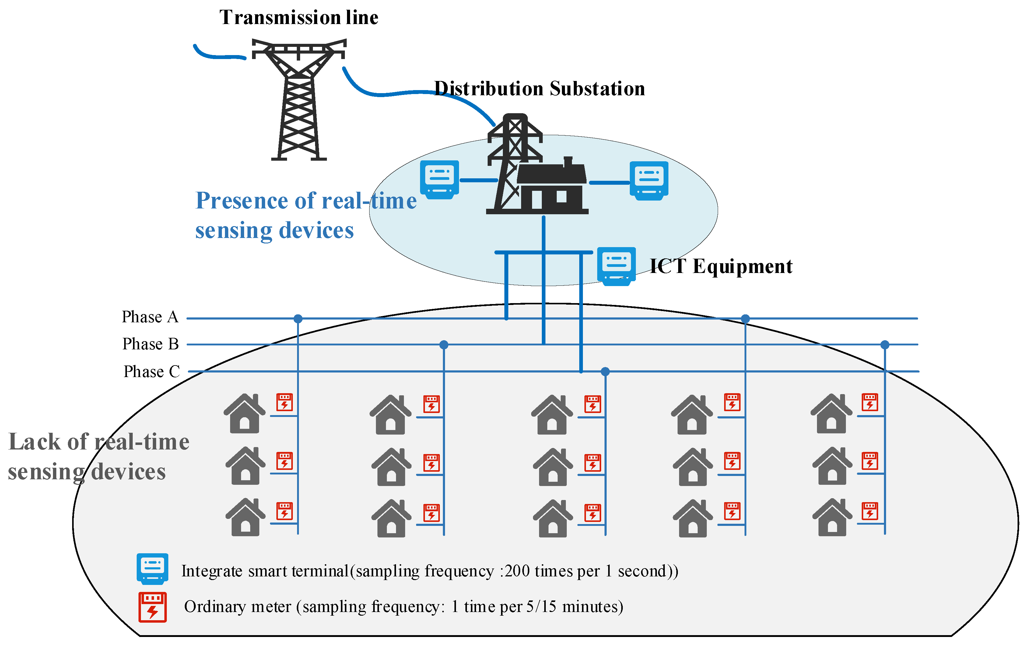 Typical LVDG Structure and limitations of measurement capability. The measurement capability is concentrated in substations, leaving most of the LVDG unmonitored.