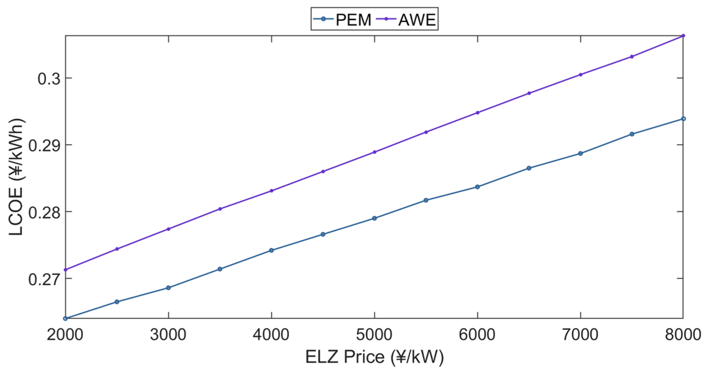 - The current PEM cost is too high, and AWE is the preferred hydrogen production method. However, after the cost of PEM is significantly reduced in the future, PEM will become the preferred hydrogen production method for rural microgrids due to its high hydrogen production efficiency and low minimum load limit.