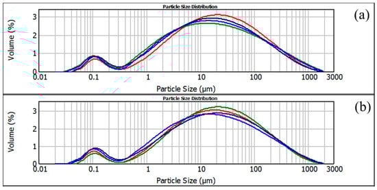 The values of the volume-weighted mean diameter (D[4.3]) are shown in Table 3, while the corresponding droplet size distributions of the examined emulsions are illustrated in Figure 1.