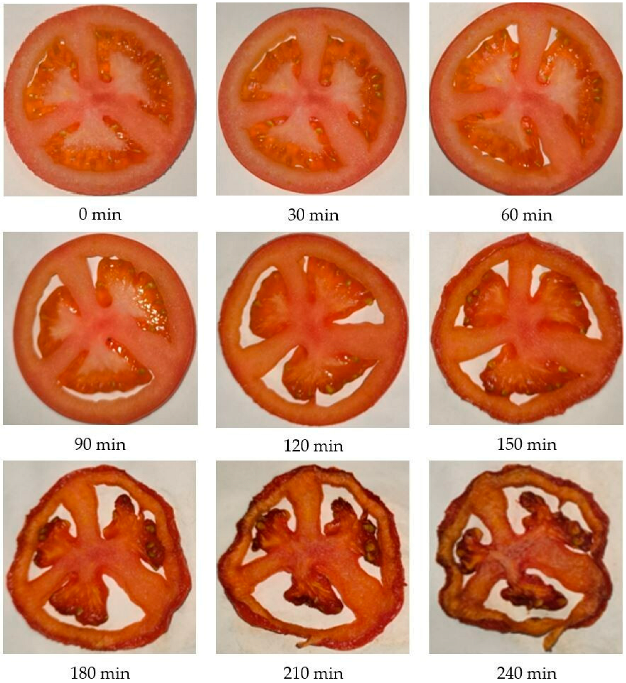 - Tan, S.; Miao, Y.; Xiang, H.; Tan, W.; Li, W. Effects of air-impingement jet drying on drying kinetics and quality retention of tomato slices. Food Sci. Biotechnol. 2021, 30, 691–699. [Google Scholar] [CrossRef] [PubMed]