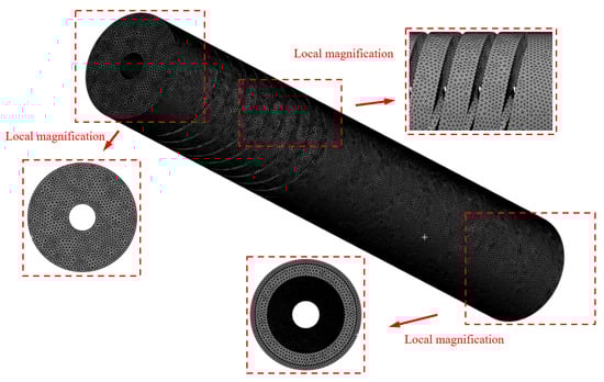 Mesh division and local magnification of the fluid domain of the hydraulic coalescer.