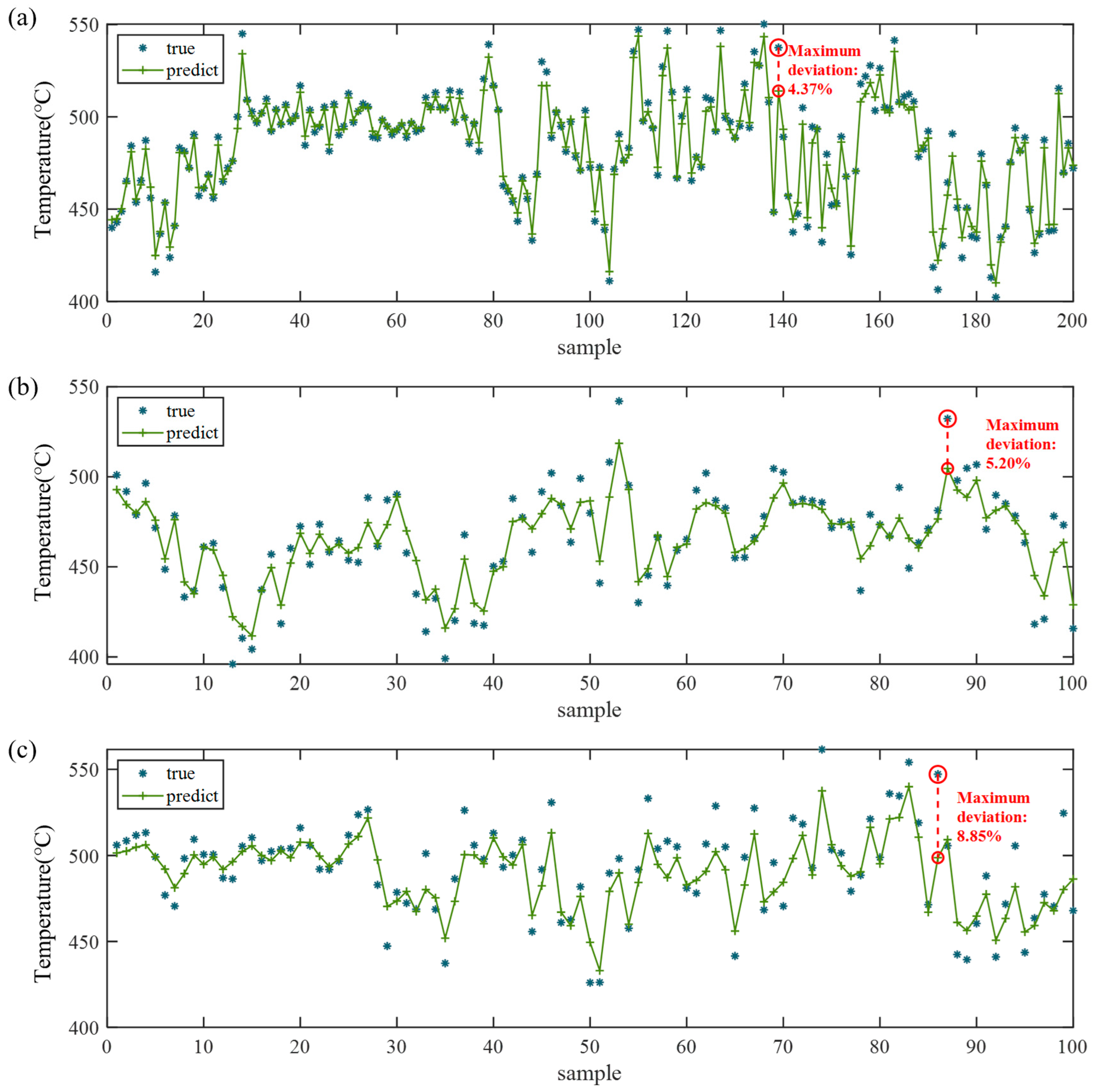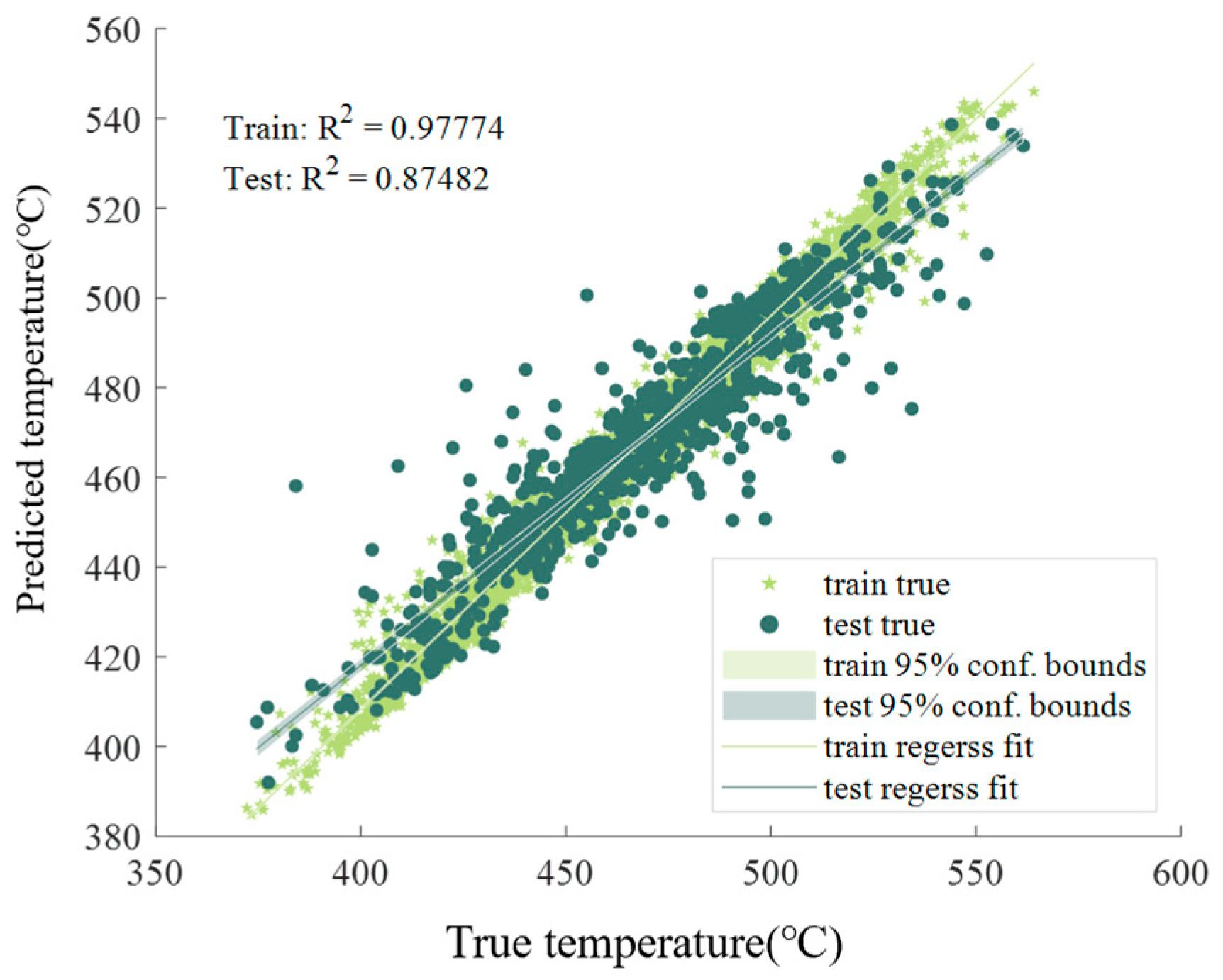 (5) The error variation from the training set to the test set and the comparison of multiple evaluation metrics verify that the model balances both fitting accuracy and generalization ability, meeting the requirements of practical industrial applications.