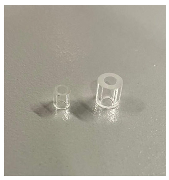 Glass Raschig rings used as packing material, 4 mm diameter (left) and 6 mm diameter (right).