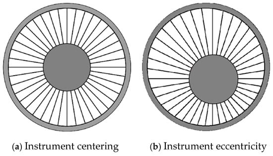 Cross-sectional views of before and after eccentricity correction.