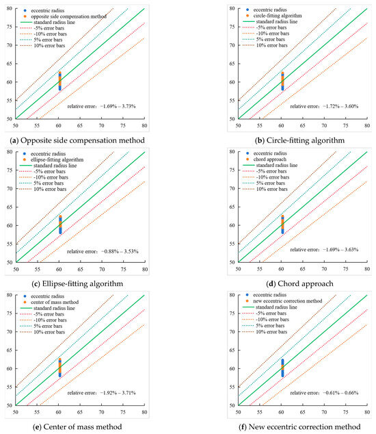 To further quantify performance disparities among correction methods and validate the advantages of the newly proposed method, this study conducted a systematic relative error analysis for each eccentric correction method. The results accurately reflect the differences in measurement accuracy and reliability among the methods, provide an important basis for evaluating their effectiveness in practical applications. The detailed data and analytical conclusions have been presented in Figure 20.