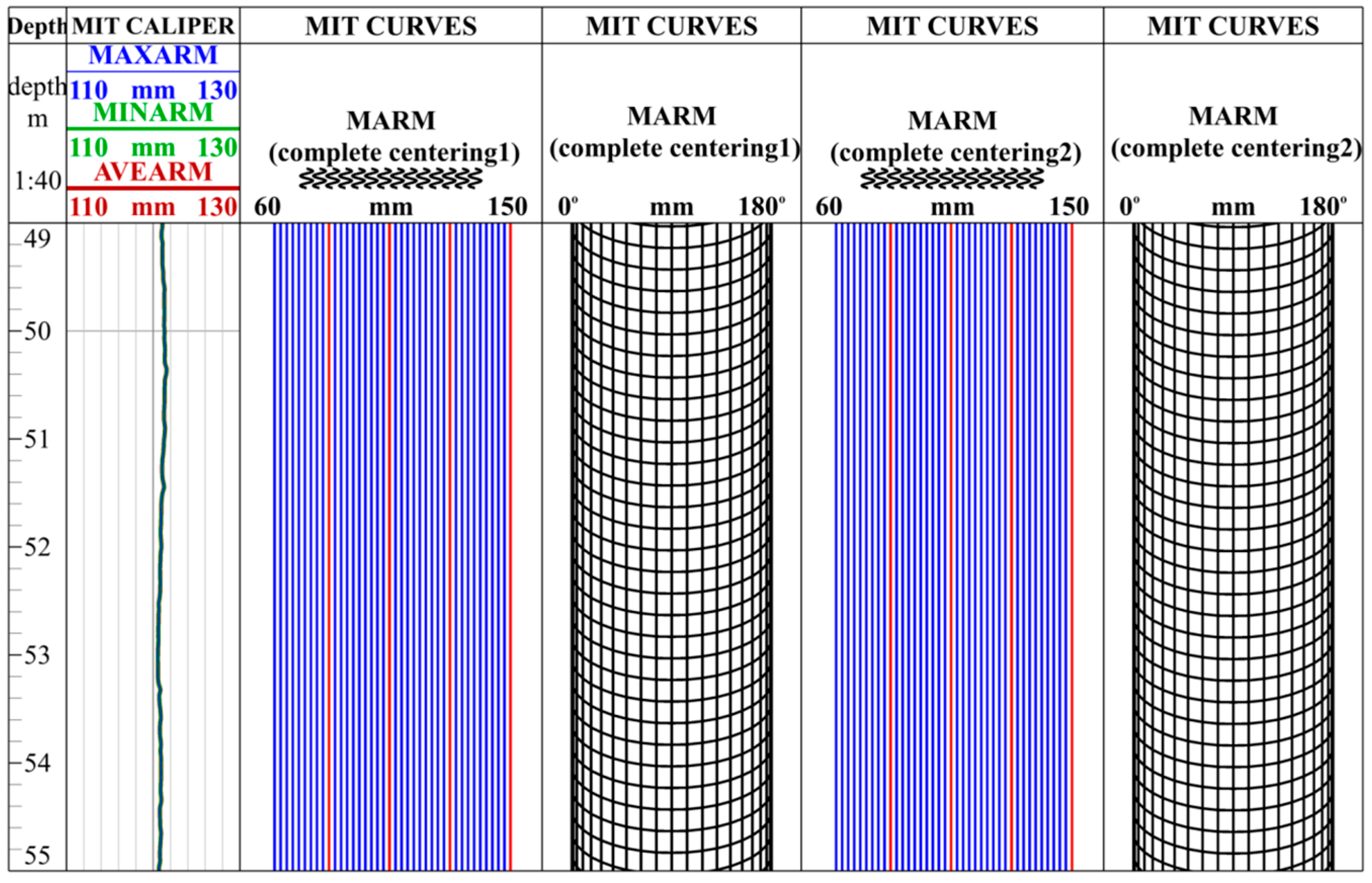 As the proposed method has been implemented in C++ and integrated into the Lead 4.0 platform, the computational efficiency of the C++ code enables practical real-time processing within the logging software suite. The method maintains its applicability even under conditions of extreme eccentricity, though such scenarios are uncommon in practice. Regarding data integrity, measurements from one or two distorted arms are typically discarded; however, datasets with excessive invalid readings are excluded entirely to ensure result reliability.