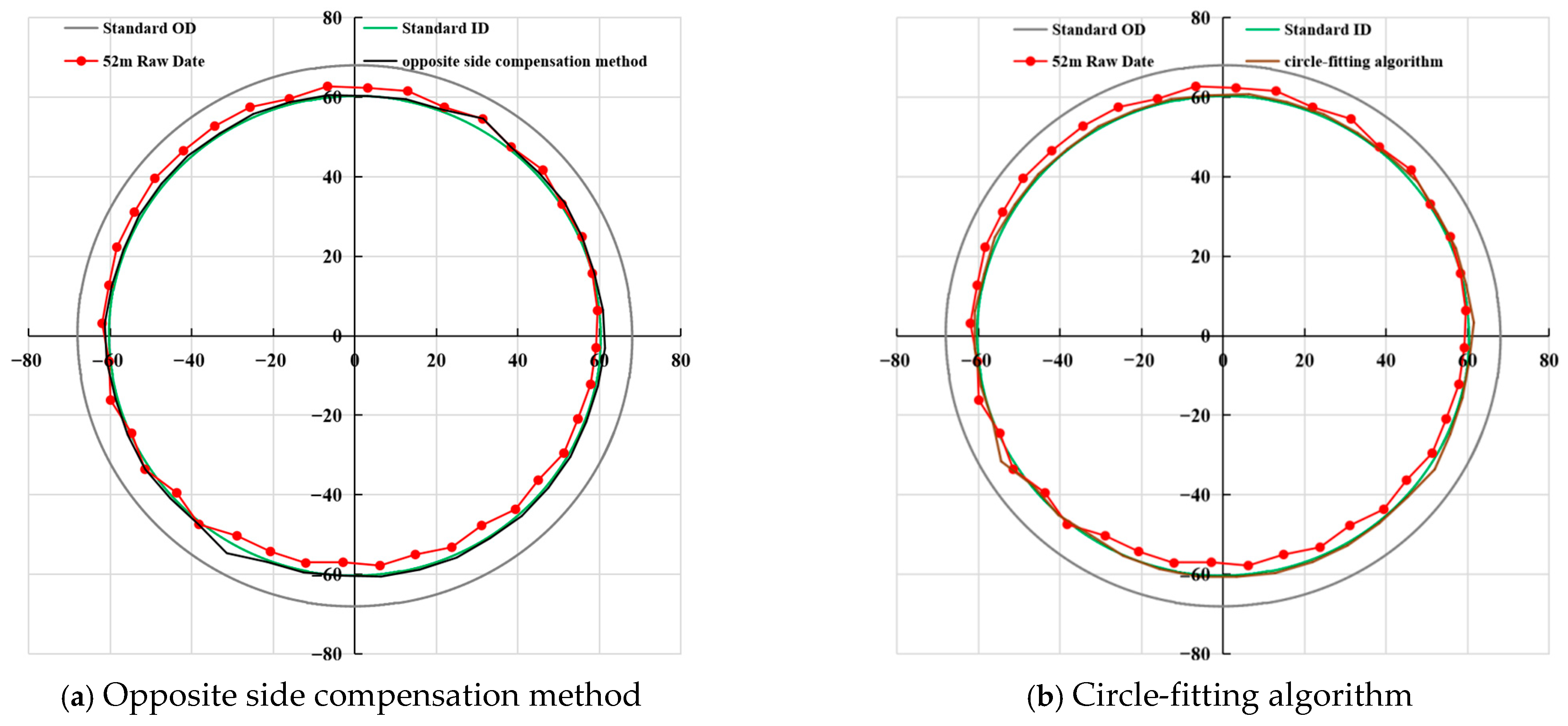 39]. The circle-fitting algorithm works for undamaged sections but produces numerous erroneous judgments in damaged casing sections [
