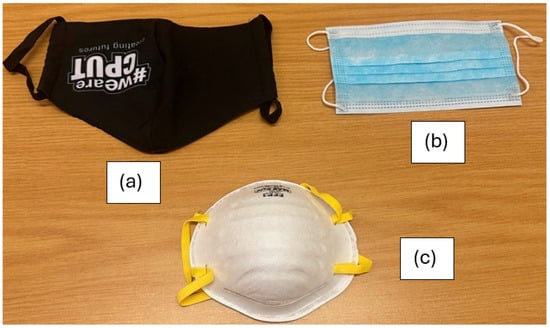 Different types of masks, (a) cloth; (b) surgical; and (c) FFP1.