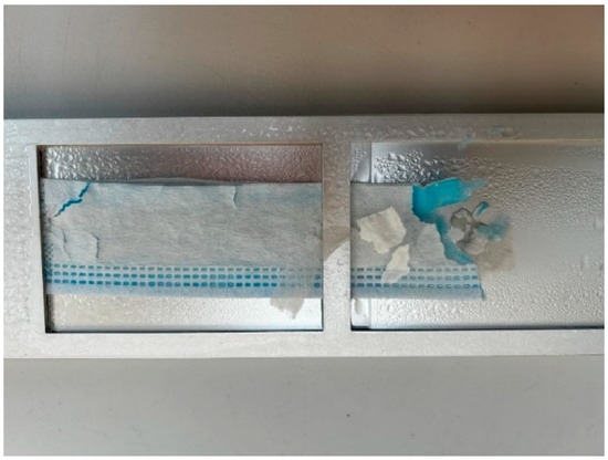 QUV accelerated weathering testing chamber (from Q-Lab, Westlake, OH, USA) simulates the effects of natural sunlight and reproduces the damage caused by weathering elements such as sunlight, rain and dew. QUV exposure using UVA-340 lamps as per ISO 4892-3:2024 [22]. In this method, mask test samples were exposed to fluorescent ultraviolet (UV) radiation and water in an apparatus designed to reproduce the weathering effects that occur when materials are exposed in actual end-use environments to daylight, or daylight through window glass. In this test, the test cycles were carried out in two steps: step 1: exposure to UV light at 0.79 W/m2 at 60 °C for 8 h; step 2: condensation at 50 °C for 4 h.