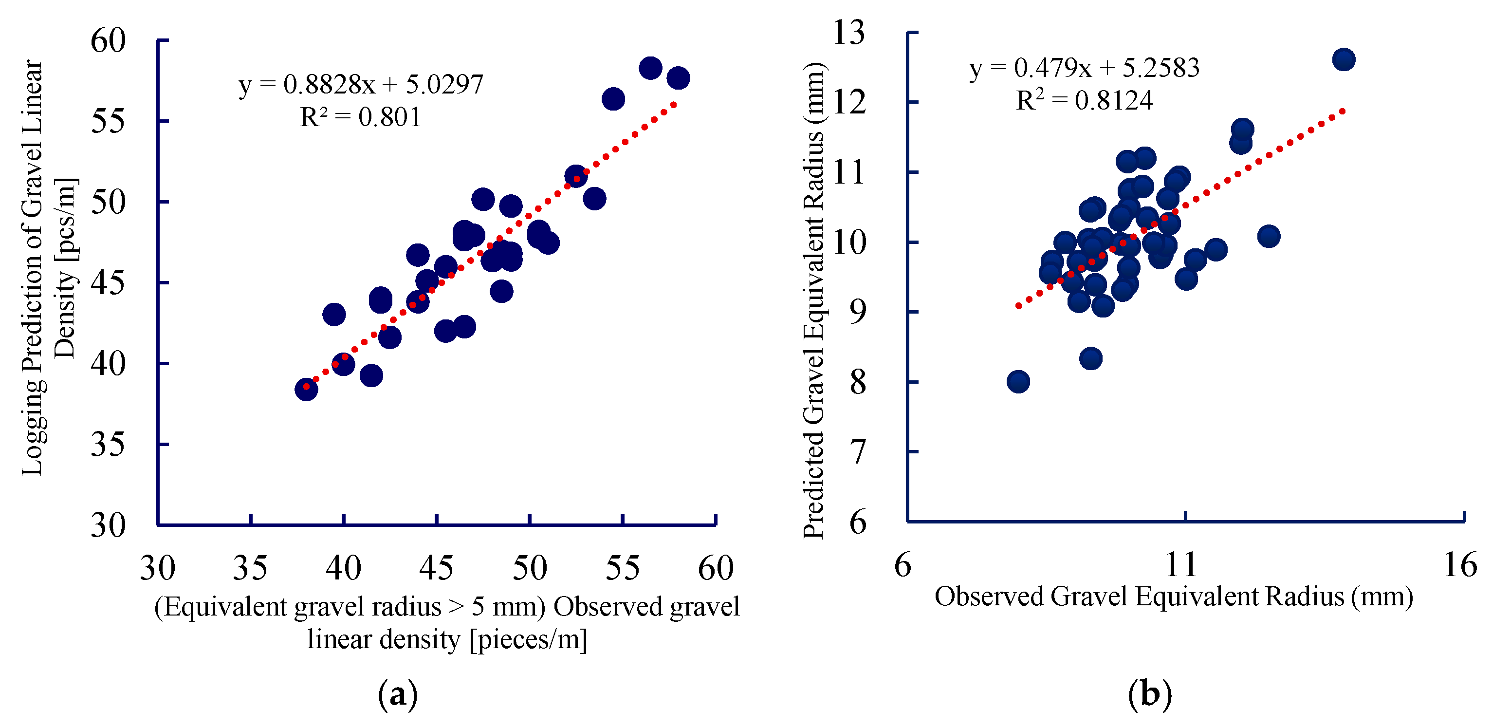 3.4. Regional Gravel Characteristic Distribution Characterization
