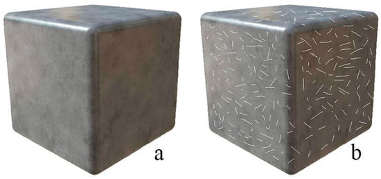 A schematic illustration of the original (a) and fiber-reinforced (b) concrete.