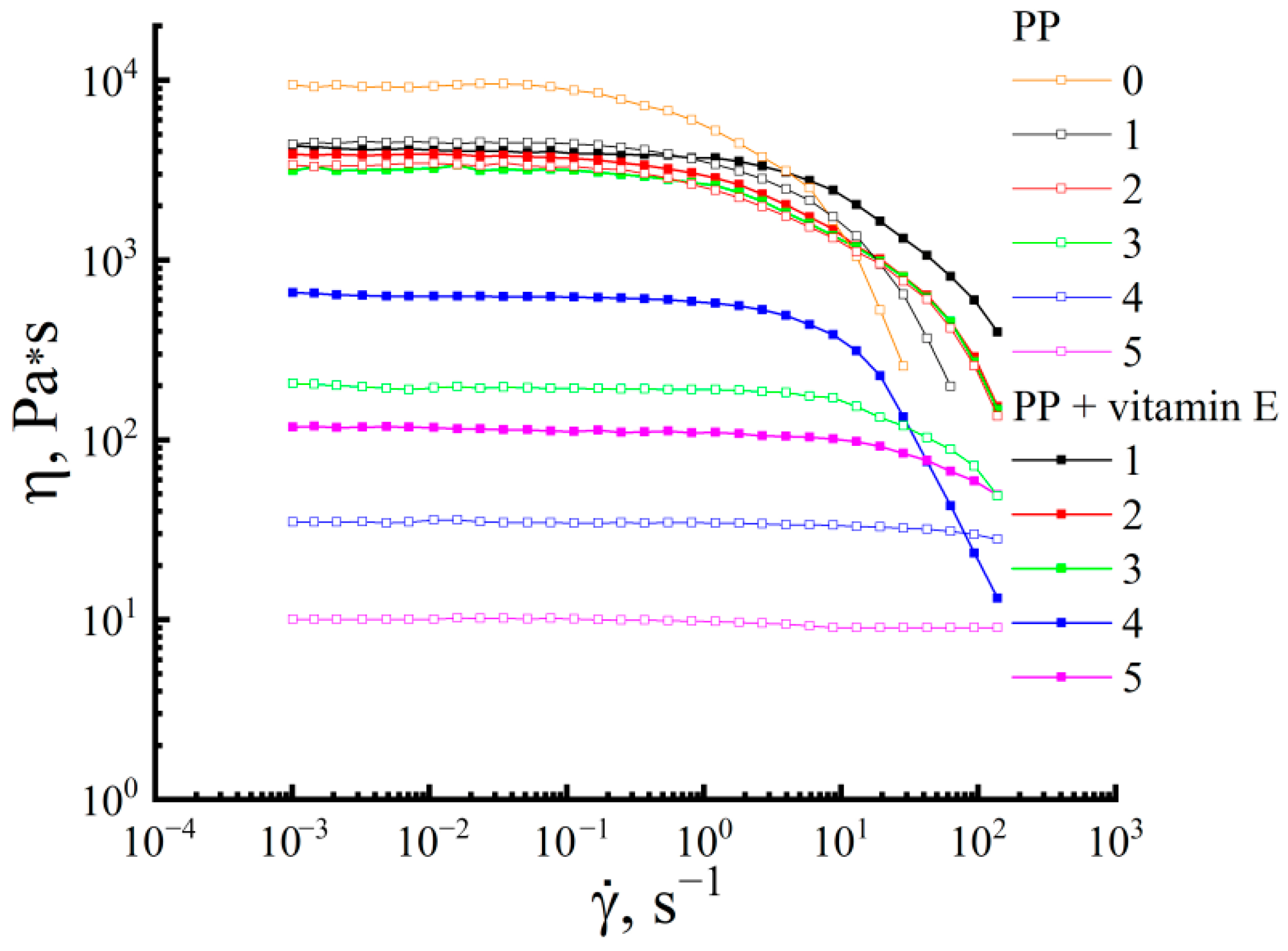 Shambilova, G.; Korshunov, A.; Vinogradov, M.; Kadasheva, Z.; Iskakov, R.; Kalauova, A.; Makarov, G.; Kalimanova, D.; Legkov, S. Recycling of Polypropylene with Vitamin E Additives: Rheological Properties and Mechanical Characteristics. Processes 2025, 13, 3923. https://doi.org/10.3390/pr13123923