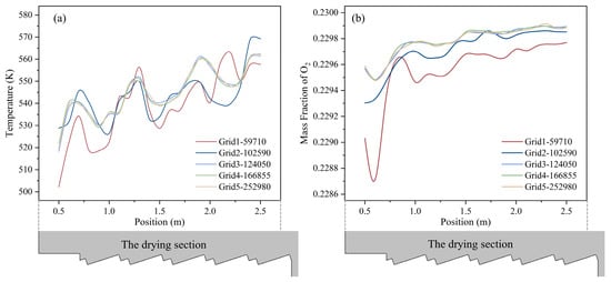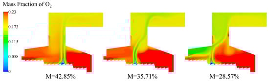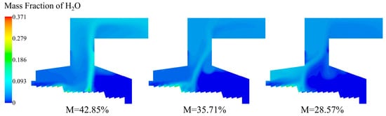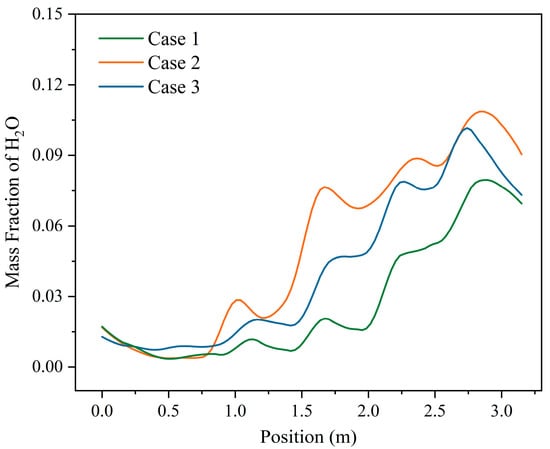 Municipal solid waste (MSW) composition and properties play a critical role in determining the efficiency and environmental impact of waste incineration processes. However, the effects of moisture variation in MSW on combustion performance in full-scale grate systems remain insufficiently understood. To reveal how the moisture variation in municipal solid waste (MSW) properties affects the combustion process in full-scale grate systems, a 50 t/d mechanical grate incinerator was modeled. The influence of MSW inlet moisture content (42.85%, 35.71%, and 28.57%) was investigated. When the moisture content is 35.71%, the horizontal and vertical temperature gradient of the incinerator was least pronounced, and the high-temperature zone in the incinerator would not be locally concentrated. The moderate ignition position could reduce the corrosion of the front and rear arches of the grate incinerator. In the combustion process of three moisture contents, the complete evaporation positions were located at X = 4.23 m in the combustion section, X = 3.15 m in the drying section and X = 2.63 m in the drying section, the corresponding ignition points were X = 6 m, X = 4.47 m, and X = 3.74 m in the combustion section, respectively. After the moisture content was reduced to 35.71% and 28.57%, the drying process was advanced by 25.5% and 37.8%, respectively; the ignition points were advanced by 25.5% and 37.7%, respectively. It is recommended that the moisture content of MSW be maintained within the range of 33.8% to 41.6% under practical operating conditions. With the decrease in the moisture content of the MSW, the O2 content at the incinerator outlet decreased; the CO2 content increased. The findings offer quantitative guidance on feed pre-treatment for MSW incineration plants.
