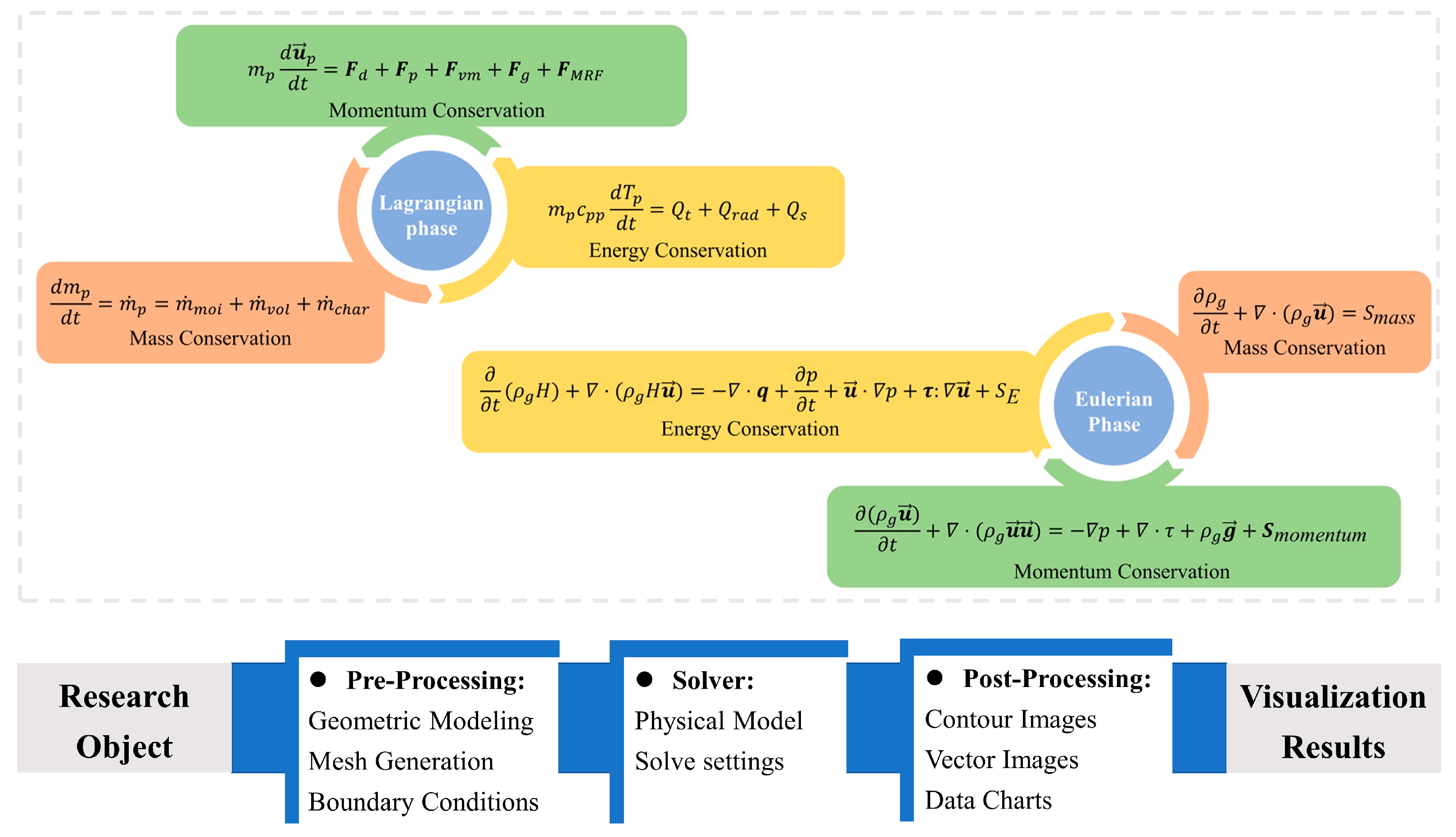 - Zhang, D.; Anjum, T.; Chu, Z.; Cross, J.S.; Ji, G. Simulation of multiphase flow with thermochemical reactions: A review of computational fluid dynamics (CFD) theory to AI integration. Renew. Sustain. Energy Rev. 2025, 221, 115895. [Google Scholar] [CrossRef]