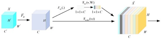 The core task of the attention mechanism is to select more critical feature information from many feature information. In recent years, it has become popular in various fields of deep learning. The application of this attention mechanism can be seen in various tasks such as natural language processing and image processing. The essence is to independently learn the importance of each channel through the network and give different weight coefficients to each output channel, so as to highlight important features and suppress unimportant features, making the bearing fault diagnosis of the model more accurate. The SE mechanism is shown in Figure 6. This method adds attention in the channel dimension. By means of automatic learning, it uses another new neural network to obtain the importance of each channel of the feature map. Then, it uses this importance to assign a weight value to each feature, thereby enabling the neural network to focus on certain feature channels and suppress irrelevant noise interference. It enhances the channels of the feature map that are useful for the current task and suppresses the channels that are less useful for the current task. This intrinsic mechanism provides potential advantages for the model’s stability in noisy environments.