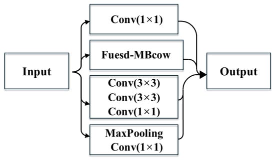 Due to the fact that using the MBConv module in the shallow layers of the model did not accelerate the training speed, the Fused-MBConv module was proposed, which replaces the depthwise separable convolution in the MBConv module with the traditional 3 × 3 convolution, and then reduces the dimensionality through a 1 × 1 convolution kernel to improve the interaction of information between channels, as shown in Figure 5.