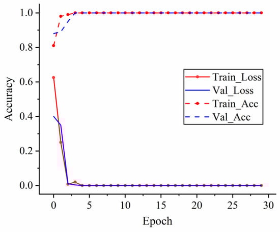 The model is programmed in the Tennorflow2.4 in-depth learning framework under Window10 system. The initial learning rate of the SGD optimizer is set to 0.01, the momentum parameter to 0.9, and the batch training size to 32 by adjusting the image to 224 × 224 as input.