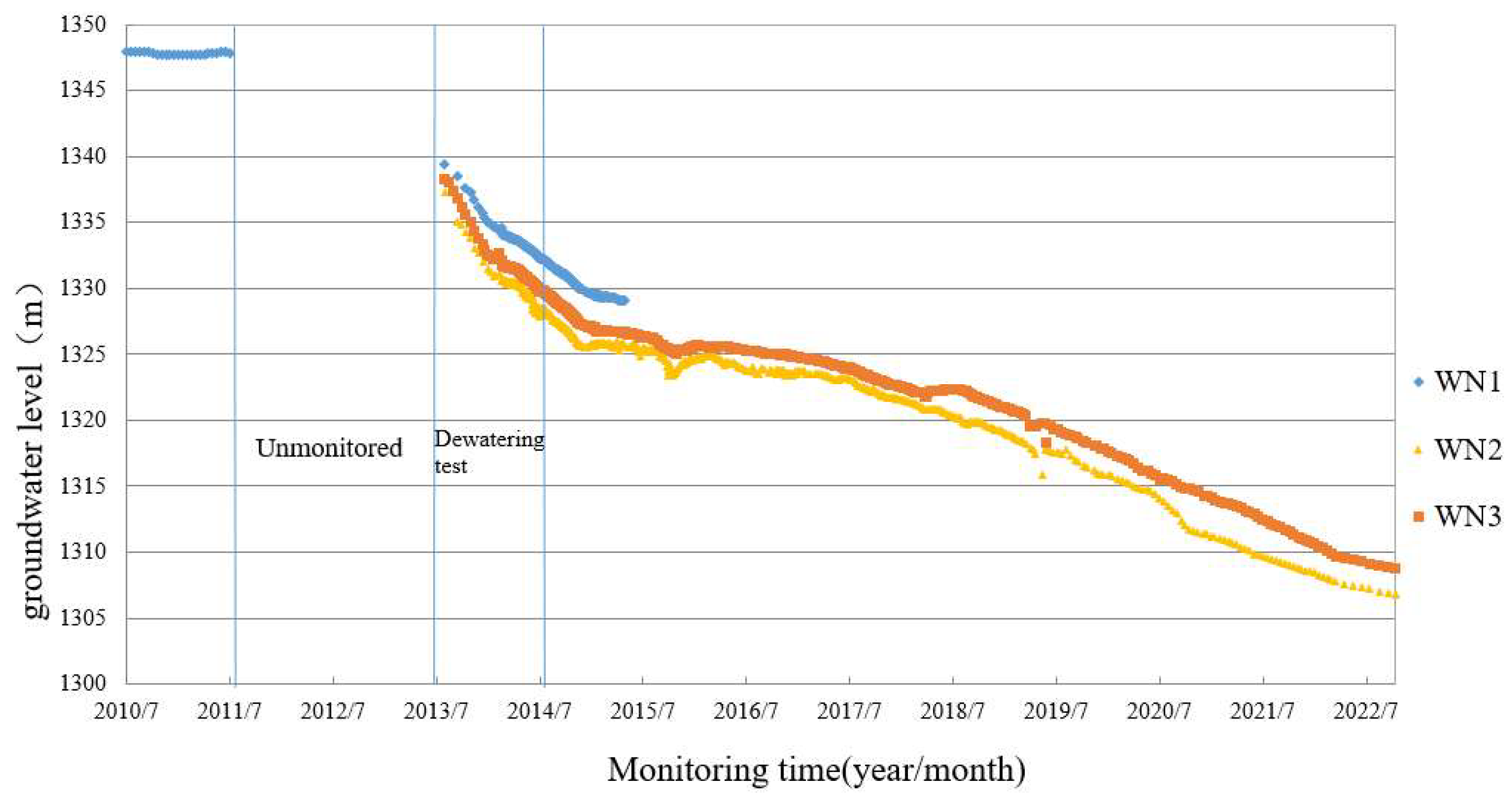 - Wu, C.; Wu, X.; Zhu, G.; Qian, C. Predicting mine water inflow and groundwater levels for coal mining operations in the Pangpangta coalfield, China. Environ. Earth Sci. 2019, 78, 130. [Google Scholar] [CrossRef]
