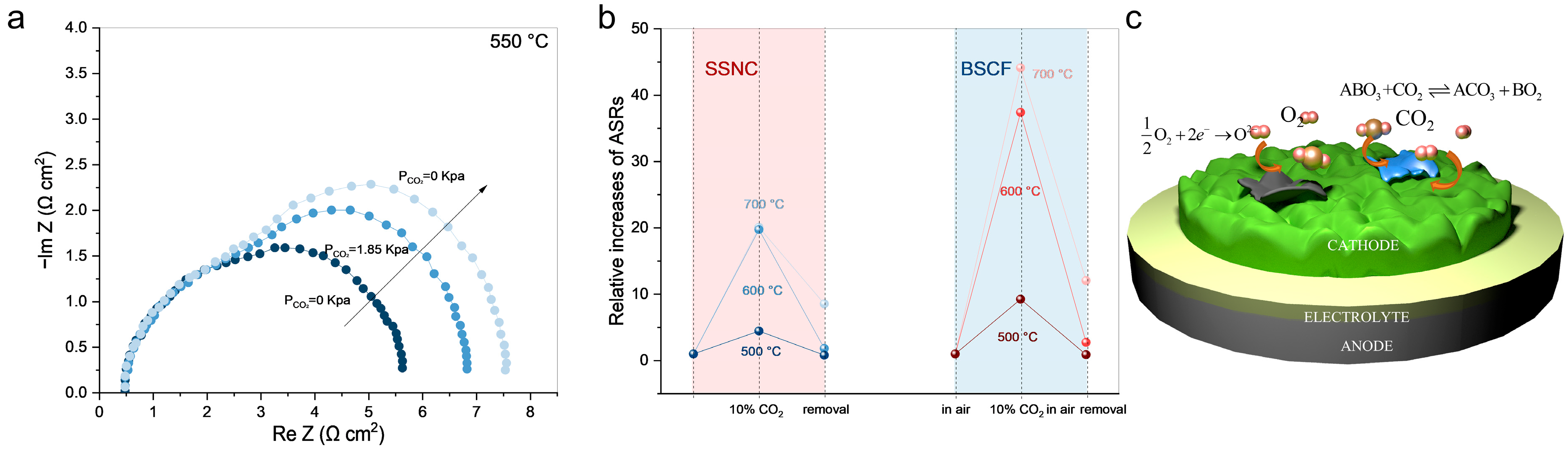 | SCNT (SrCo0.8Nb0.1Ta0.1O3−δ) | 550 | 1 | 100 | Rp: ~0.13 to ~1.3 |