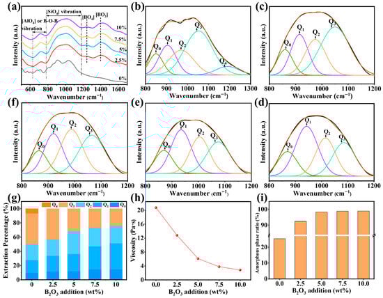 3.2.2. Positive Effects of B2O3 on Vitrification and Silicate Network Depolymerization