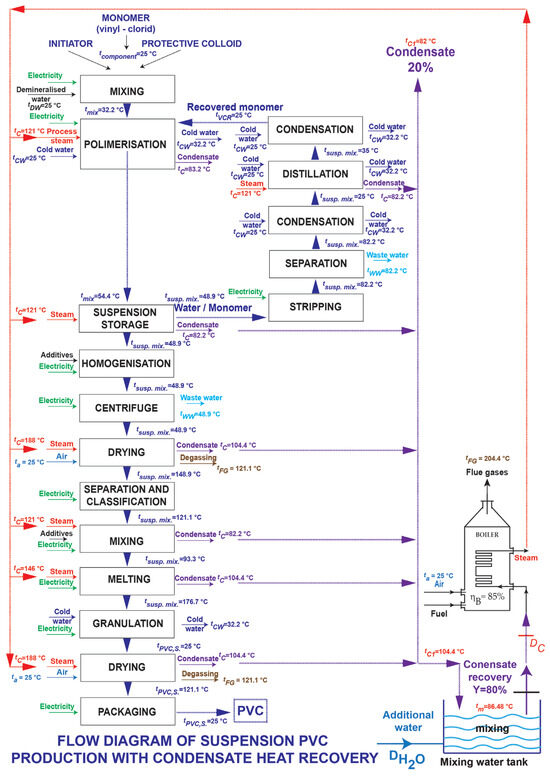 Flow chart of suspension-PVC production with condensate heat recovery [26].