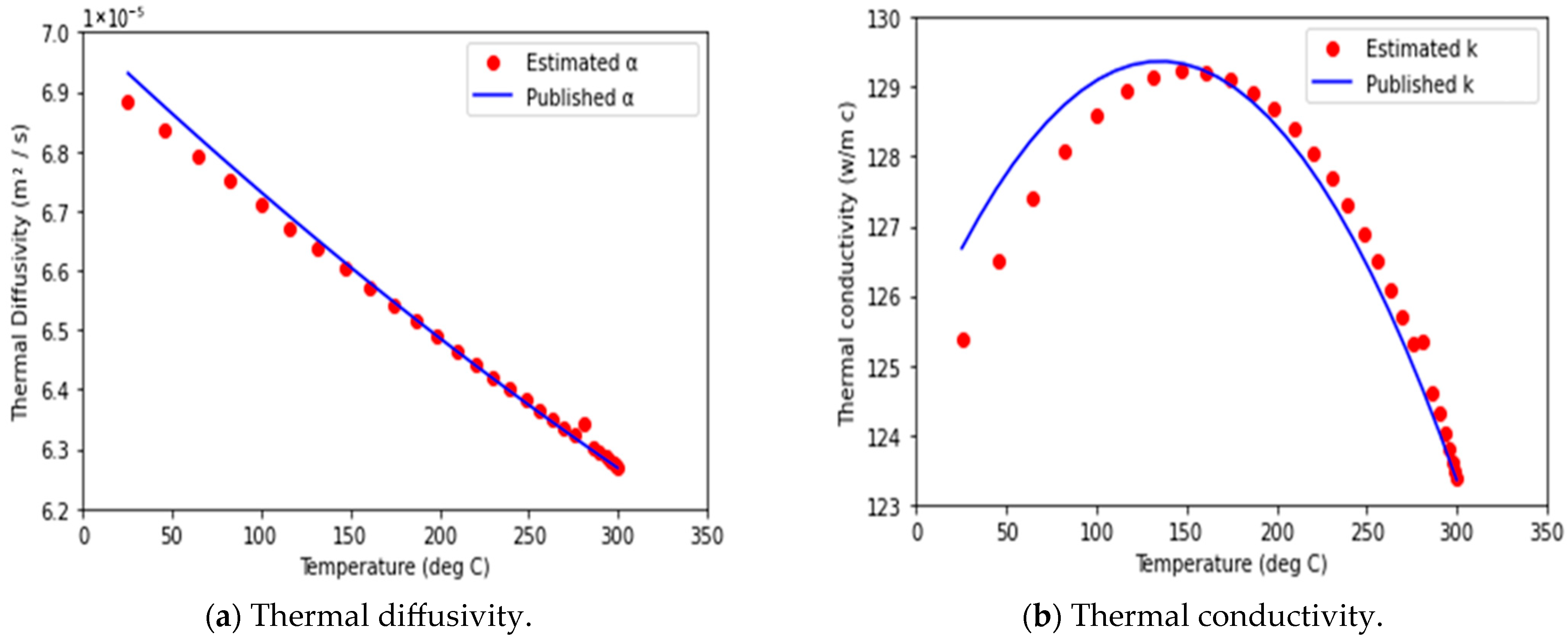 - Reoyo-Prats, R.; Grieu, S.; Faugeroux, O.; Claudet, B. A novel ANN-based method for simultaneous estimation of thermophysical properties using experimental photothermal data. Eur. Phys. J. Appl. 2021, 93, 10901. [Google Scholar] [CrossRef]
