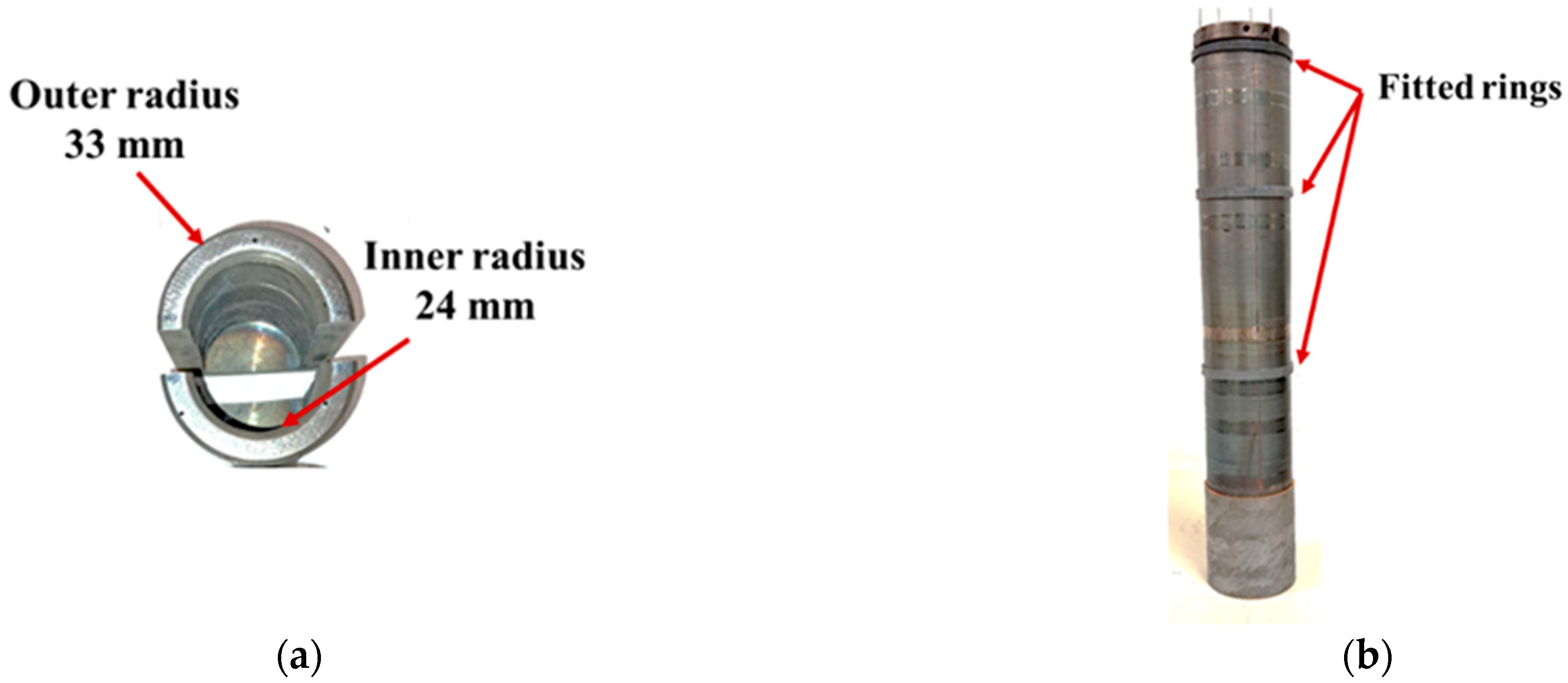 - Chiba, H.; Ogushi, T.; Nakajima, H.; Torii, K.; Tomimura, T.; Ono, F. Steady state comparative-longitudinal heat flow method using specimen of different thicknesses for measuring thermal conductivity of lotus-type porous metals. J. Appl. Phys. 2008, 103, 013515. [Google Scholar] [CrossRef]