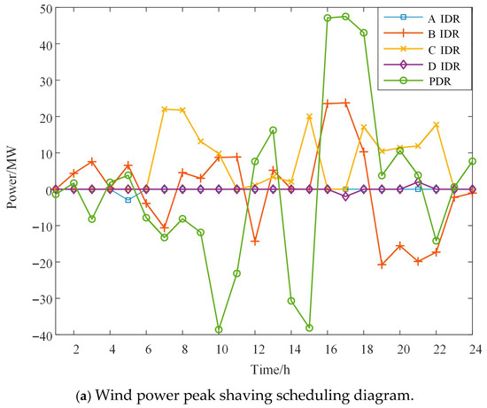 - From the calling situation of various DR resources in Figure 7, it can be generally observed that during the day, IDR resources are mainly used for peak shaving and stabilizing wind power fluctuations, while at night, IDR resources are mainly used for valley filling.
