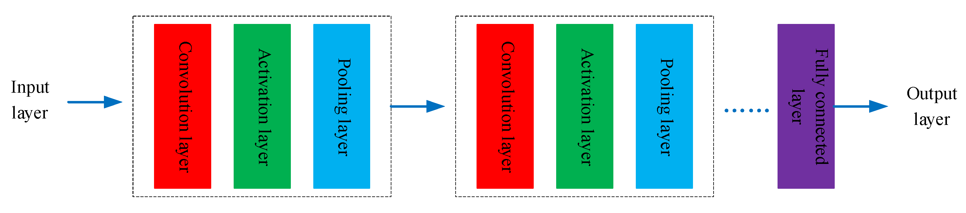 26]. The key innovation of CNNs lies in the convolutional layers, which employ local connectivity and shared weights. Neurons in a convolutional layer are connected only to a local region of the input, allowing the network to learn localized patterns. By sharing weights across the entire input field, the network significantly reduces the number of trainable parameters (w, b), which accelerates training and mitigates the risk of overfitting. The structure of a fundamental CNN model is illustrated in