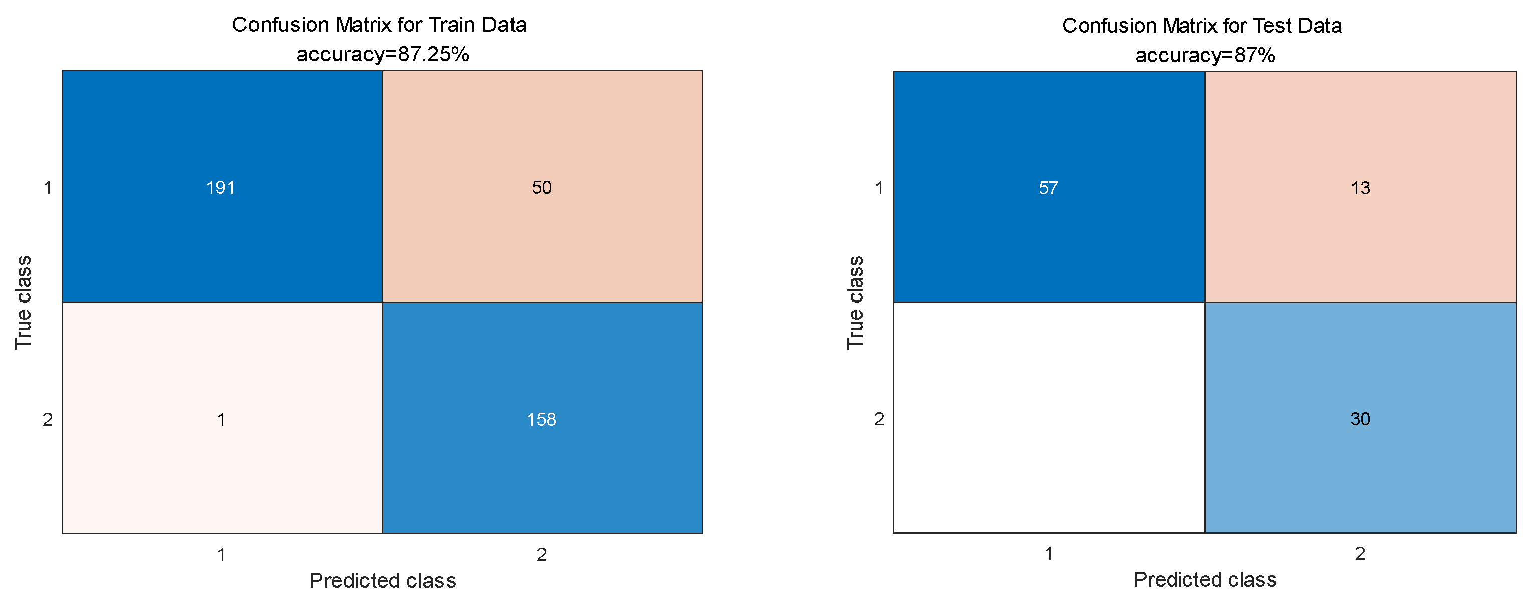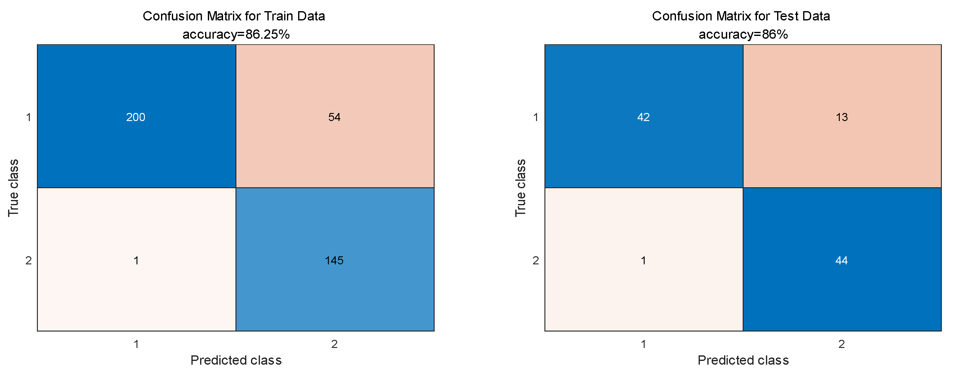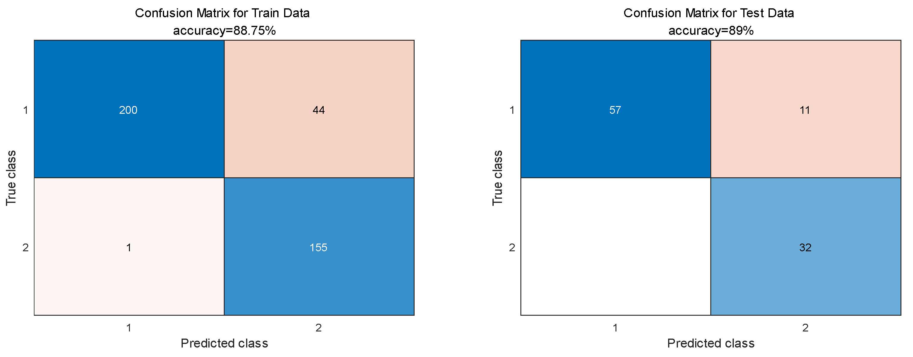 The performance of the trained BPNN is summarized by the confusion matrices in