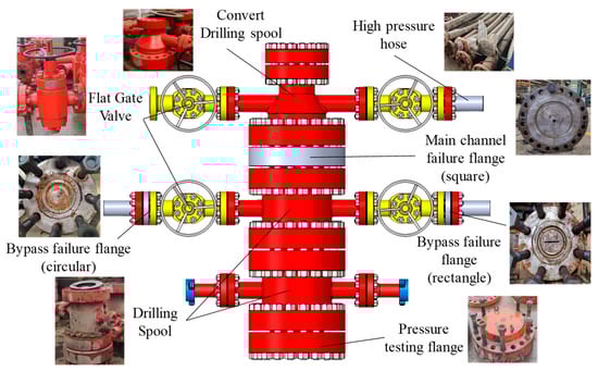 The wellhead BOP is the last line of defense to ensure the safety of a wellbore in drilling engineering. Operations such as closing and killing wells must be performed to ensure the sealing of the BOP [1]. Once a BOP fails, drilling engineers find it difficult to adopt measures to deal with major accidents, such as overflows and blowouts, posing a threat to personal and property safety. In preliminary research, a feasibility study was conducted on using particles to plug the cracks of BOP, focusing on analyzing the influencing factors of plugging effects [2]. However, using simulations alone is not sufficient to confirm the feasibility of particle-plugging cracks in the BOP. In recent years, numerical simulation methods such as computational fluid dynamics (CFD), discrete element method (DEM), and coupled CFD–DEM approaches have been increasingly used to model outburst hazards in drilling engineering. These methods allow detailed analysis of gas migration, particle transport, and pressure evolution during wellbore instability or blowout scenarios, which are difficult to capture experimentally. By combining multiphase flow and solid–fluid interaction modeling, numerical methods provide an effective tool to predict and mitigate outburst risks during emergency well control operations.