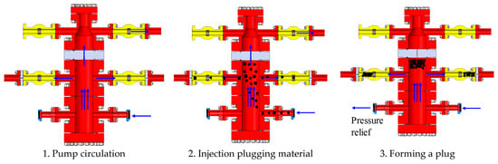 If the BOP fails during the overflow process, the drilling fluid in the wellbore is sprayed out continuously. Therefore, the fluid inside the BOP undergoes a transition from the drilling fluid to the drilling fluid–formation fluid mixture to the formation fluid in a short period of time. During this process, the flow rate of the fluid in the BOP increases, and the composition becomes complex, making it difficult to provide stable reaction conditions for plugging methods that require chemical reactions. Therefore, plugging methods that require methods requiring reaction time or specific environments were excluded.