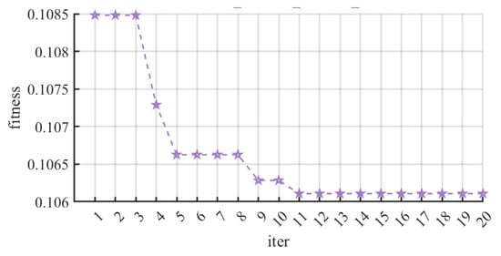The hyperparameter optimization process for the PSO-XGBoost model in this study was implemented via the PSO algorithm. In practice, the K-fold cross-validation method was used to partition the original training dataset into 10 mutually exclusive subsets. Sequentially, 9 folds were used as the secondary training set and the remaining 1 fold as the secondary test set, thus constructing an evaluation framework for hyperparameter search. The main parameter settings for the PSO algorithm were as follows: Population size was 20, number of Iterations was 12, inertia weight range was [0.4, 0.9], cognitive weight was 2.0, and social weight was 2.0. Through multiple attempts, we found that 15 particles and 11 iterations were sufficient to achieve stable convergence. Further increasing the number of iterations or particles resulted in negligible improvements in outcomes but significantly increased computational time, as shown in Figure 10. To strike a balance between optimization effectiveness and computational cost, we ultimately set the number of particles to 20 and iterations to 12.