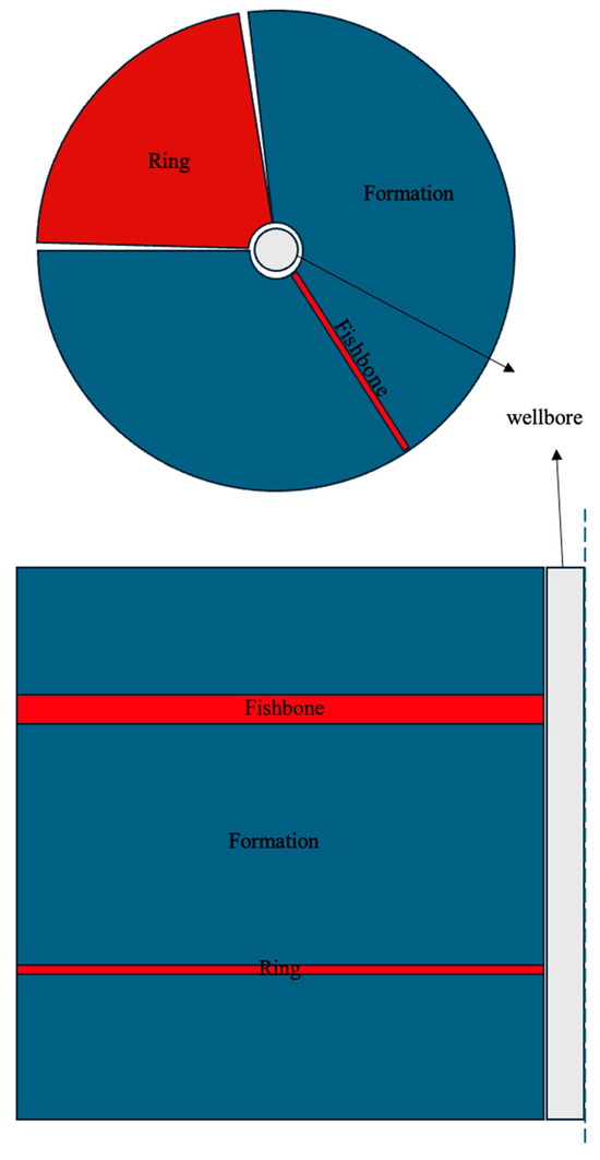 This approach is suitable for millimeter- to centimeter-scale conductive inclusions aligned with heat flow. Unlike the ring, the fishbone volume does not scale with annular control volume; hence, the local volume fraction () diminishes with distance from the wellbore, requiring updates to at each radius.