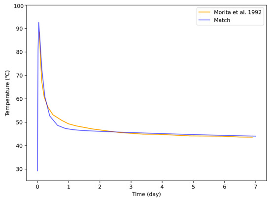 Model temperature output versus the field data reported by [24].