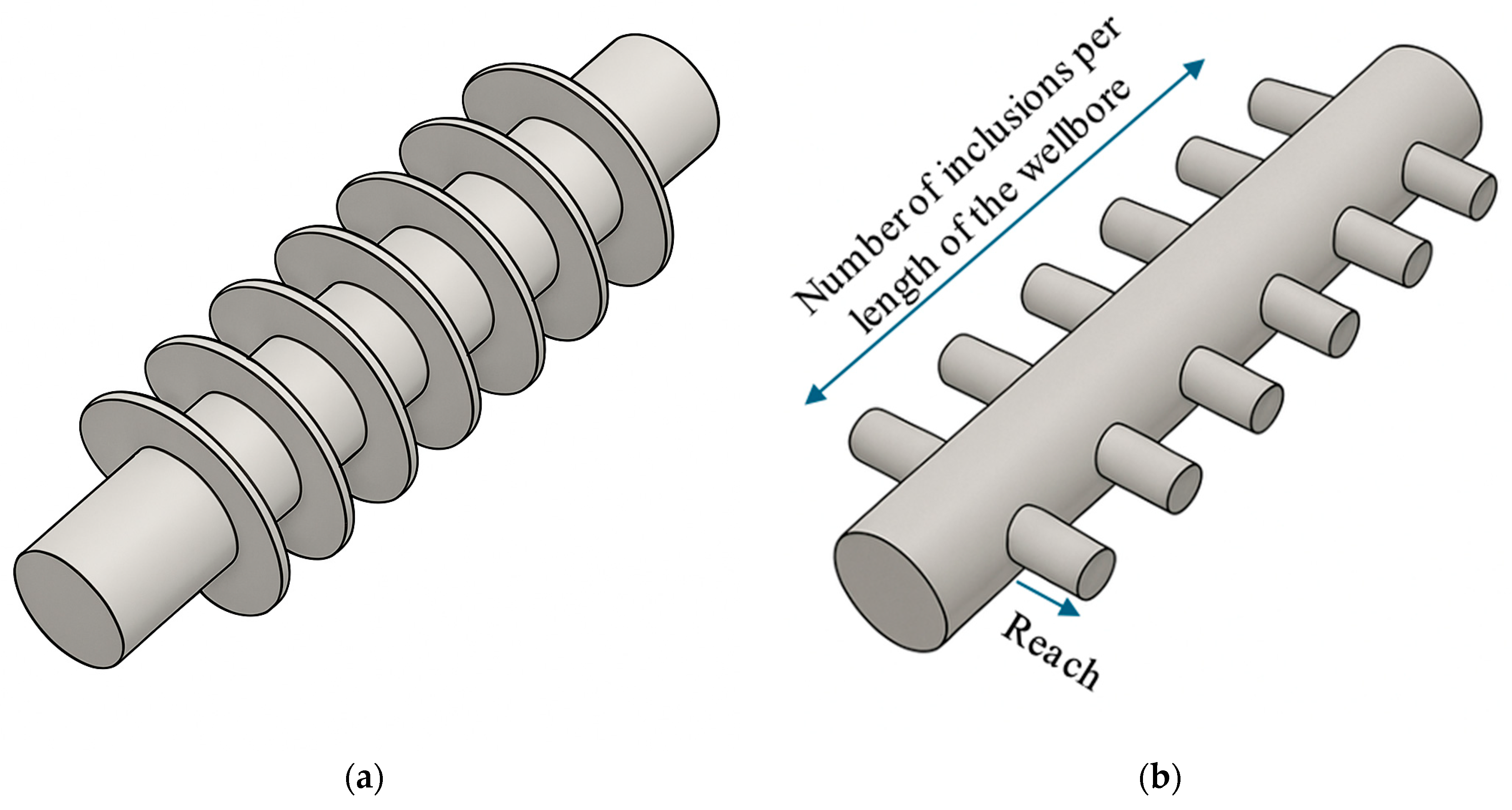 | Case ID | Type | Inclusion Thickness (m) | Inclusion Reach (m) | # of Inclusions per Unit Length of Wellbore | Vol. Fraction |