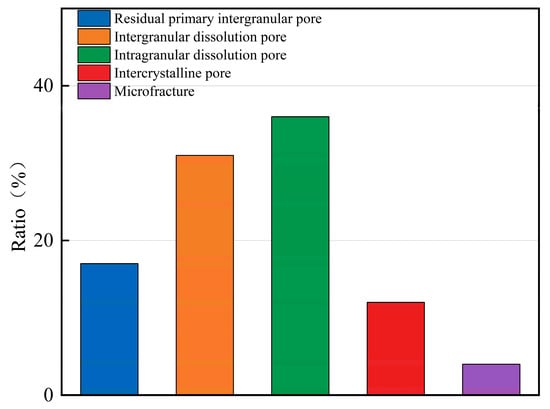 Frequency distribution histogram of reservoir pore types in the He 8 Member, central Linxing area, Ordos Basin.