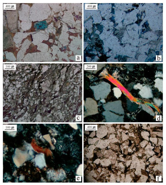 - Luo, J.; Liu, X.; Fu, X.; Li, M. Impacts of petrographic composition and diagenetic evolution on the quality and productivity of tight sandstone reservoirs: A case study of the Upper Paleozoic He 8 gas reservoirs in the Ordos Basin. Earth Sci.—J. China Univ. Geosci. 2014, 39, 537–545. [Google Scholar]