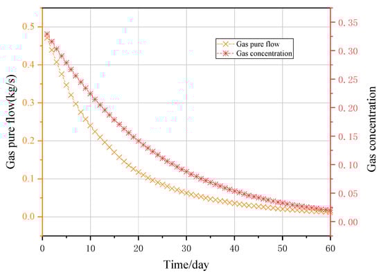 The boundary conditions for the pure gas flow rate and air flow rate of the negative pressure at the extraction gas source end are established [31]:
