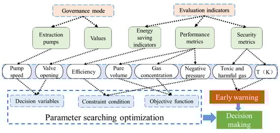 In the event of anomalies in the gas extraction system, parameter optimization can be conducted, and corresponding decisions can be made based on the optimization results to achieve intelligent control of the gas extraction network. The control strategy is illustrated in Figure 11. It is undeniable that our current optimization process, which may have certain limitations, will be addressed in future research by incorporating deep learning theories, such as algorithms like artificial neural networks, for optimization purposes.