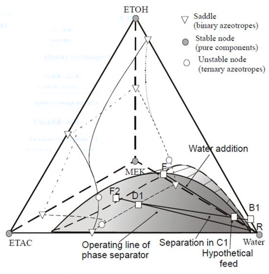 - Rév, E. Crossing of Valleys, Ridges, and Simple Boundaries by Distillation in Homogeneous Ternary Mixtures. Ind. Eng. Chem. Res. 1992, 31, 893–902. [Google Scholar] [CrossRef]