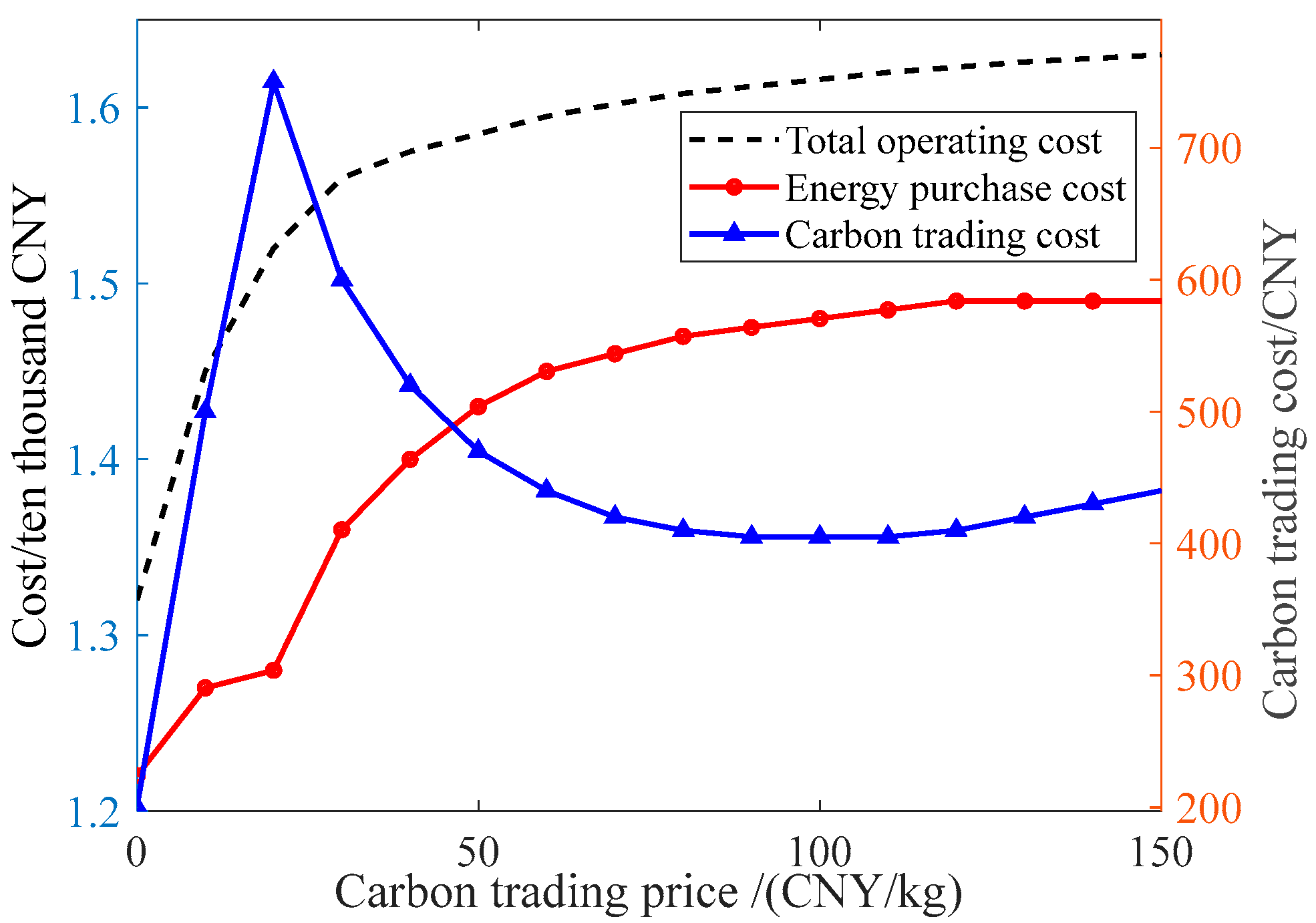 - As carbon trading prices rise and effectively reduce carbon emissions, they also lead to an increase in carbon trading costs. Different levels of carbon trading prices have varying impacts on the system’s operation costs and carbon emissions. Therefore, scientifically and reasonably setting the carbon trading price can achieve low-carbon development while considering economic benefits.