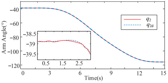 Figure 5 and Figure 6 present the primary validation of the trajectory tracking performance of the proposed C1 controller. The results demonstrate that the integrated system, combining the K-filter state observer and the adaptive fuzzy controller, successfully achieves high-precision tracking of the desired trajectories for both the boom and arm joints under the standard operating conditions.