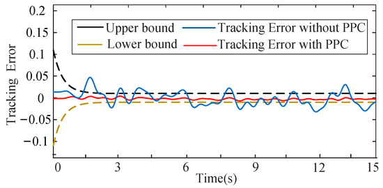 To quantitatively validate the critical role of the PPC framework, a comparative analysis between the proposed controller (C1) and a counterpart without PPC (C2) is presented in Figure 7 and Figure 8. The results conclusively show that only C1 guarantees that the tracking error remains within the user-defined, exponentially decaying performance bounds, thereby validating the theoretical PPC capability.