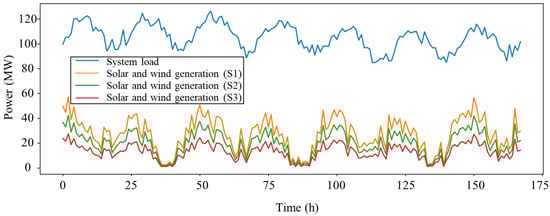The system load and renewable energy generation used to generate scenarios are shown in Figure 4.
