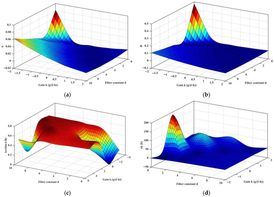 where K is the feedback gain [L/g/h]; D0 is the nominal dilution rate set as 0.142 h−1. It bears noting that washout filters are inoperative till vibrational signals are detected; hence, the stabilizing control expects y* = 0, and the equilibrium is preserved by washout filter-aided P-control.