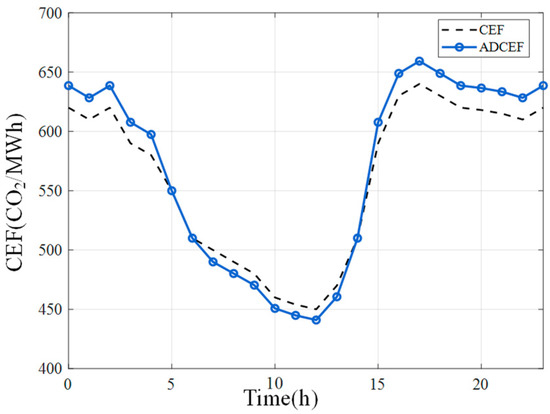 where denotes the output power of renewable energy at time t, while the actual grid-connected output power of renewable energy is . Since > 0, the ADCEF becomes negative, reflecting excess reduction contribution for price signals. ADCEF adapts to source-load dynamics, coupling network carbon state with user behavior to highlight intensity differences.